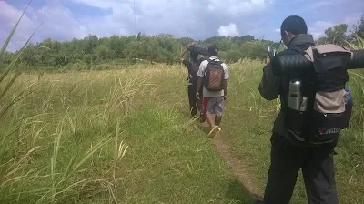 Beberapa kali kita berpapasan sama muda-mudi berpasangan, gile dah bikin ane baper galau lagi! ditambah perjalanan yang menurut ane kagak kelar-kelar, dan setelah beberapa menit berlalu akhirnya kita bertemu dengan padang mirip sabana, padang luas dengan tanaman tebu yang masih pendek-pendek dan ada ilalangnya. uhuyy romantis dah! tapi Panas matahari tetep gak bikin romantis!